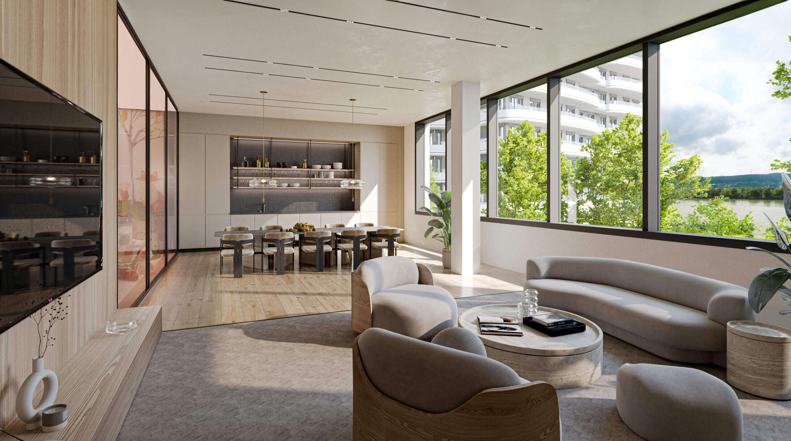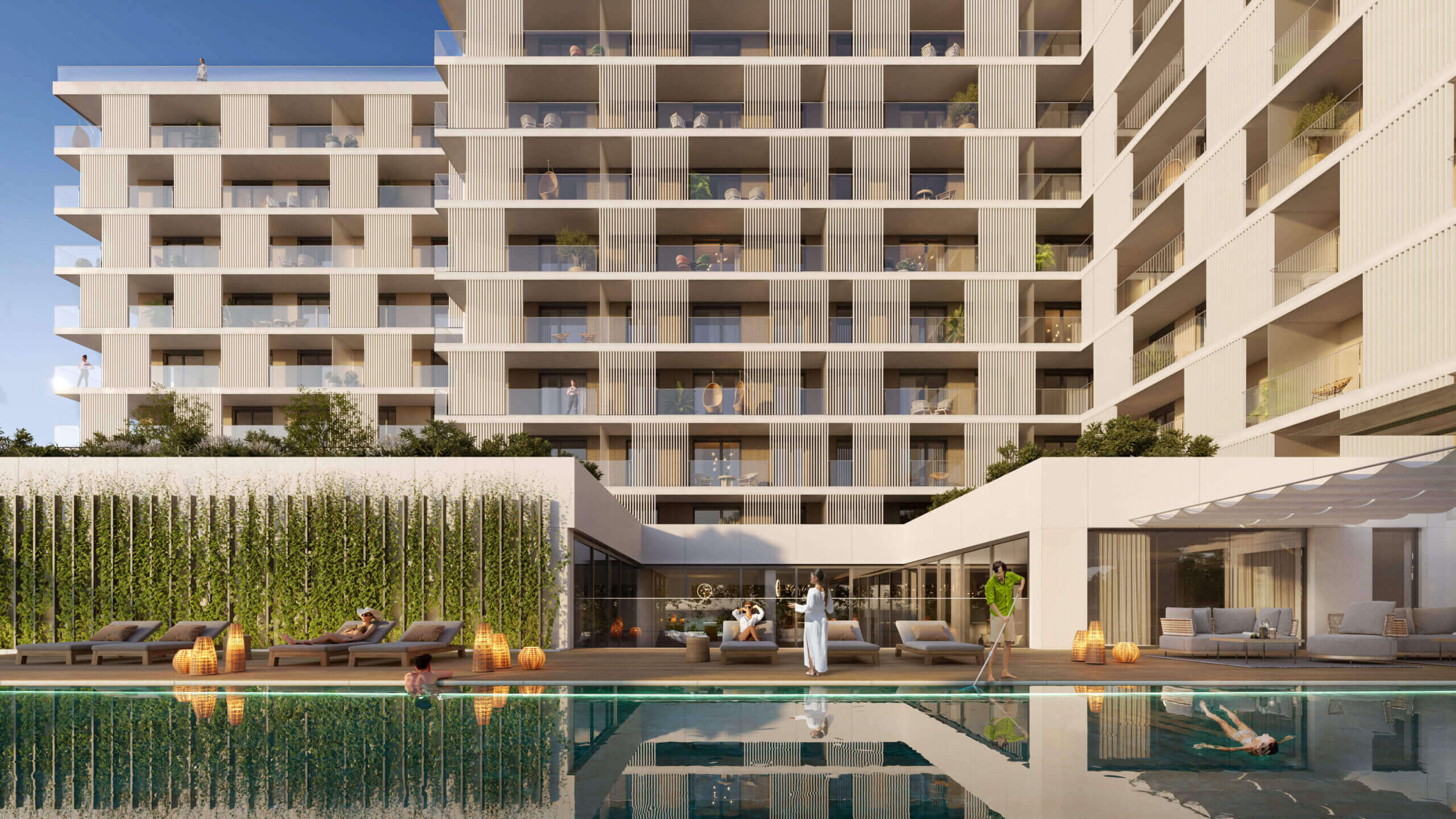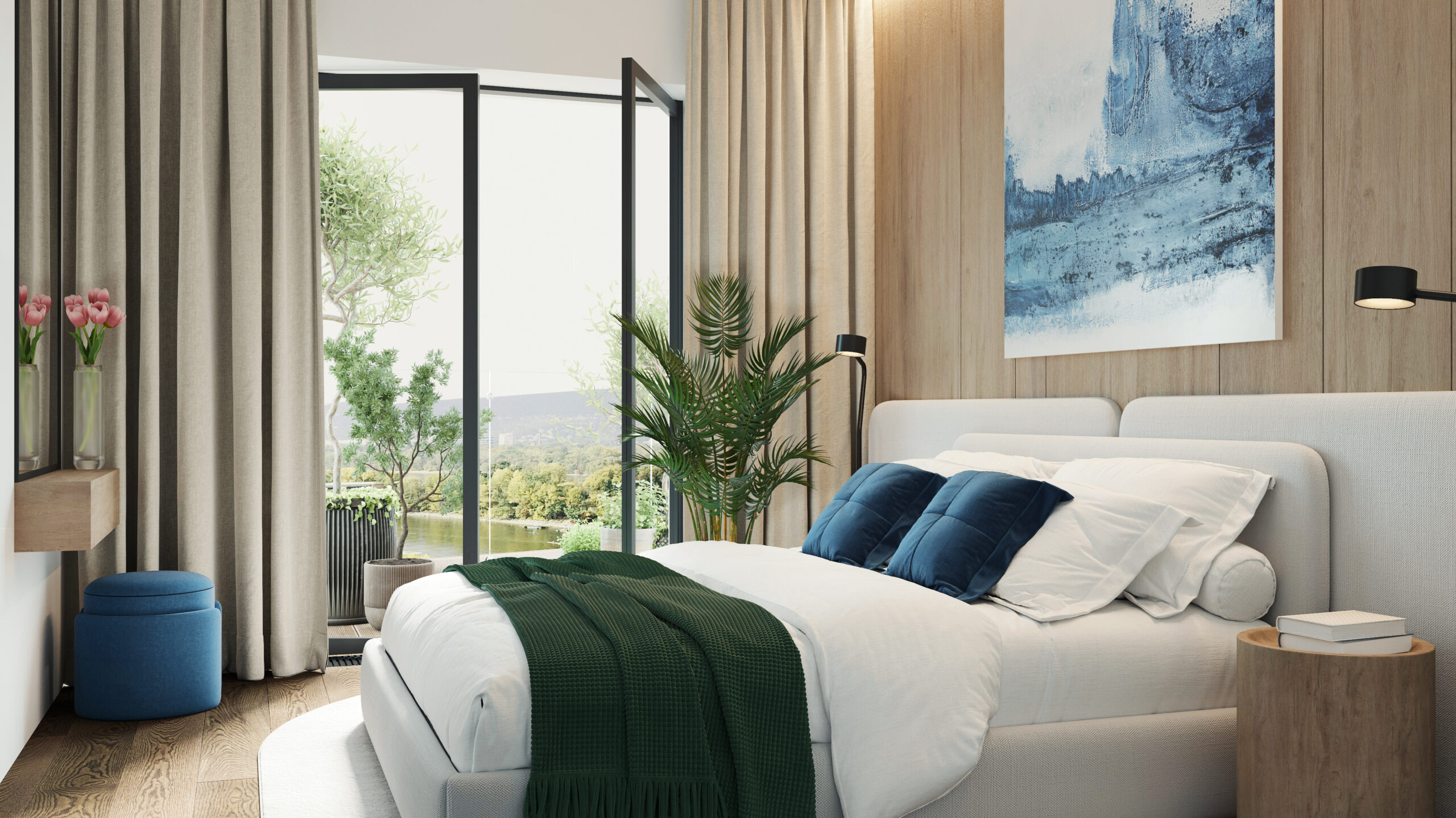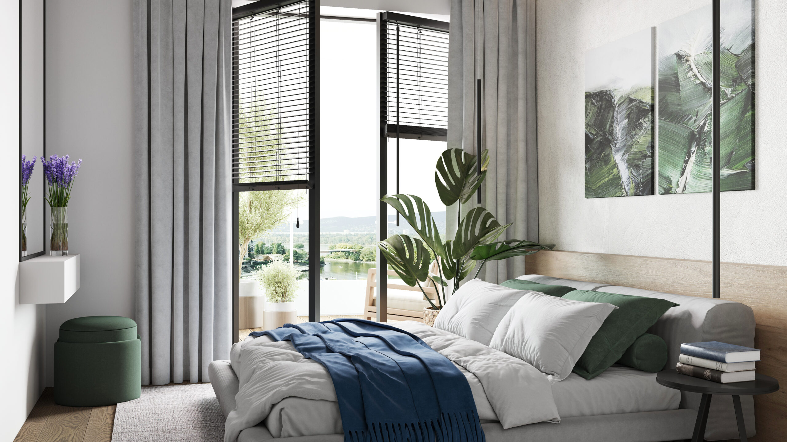 A felszín alatti tágas parkolók garantálják a parkosított zöldterület zavartalanságát, miközben teljes kényelmet nyújtanak a lakóknak és az autóval érkezőknek.
