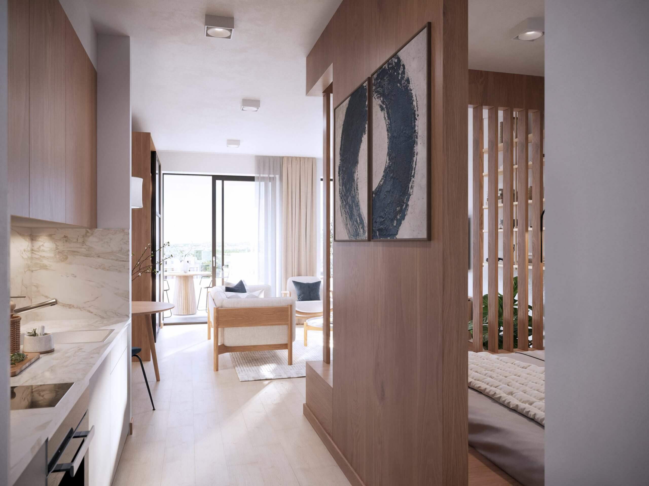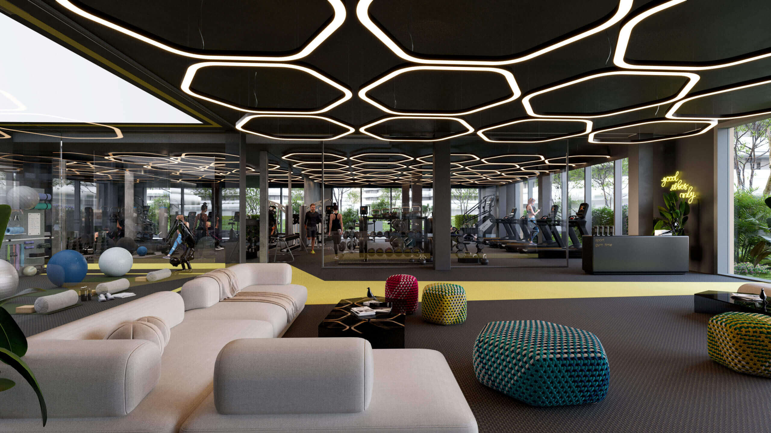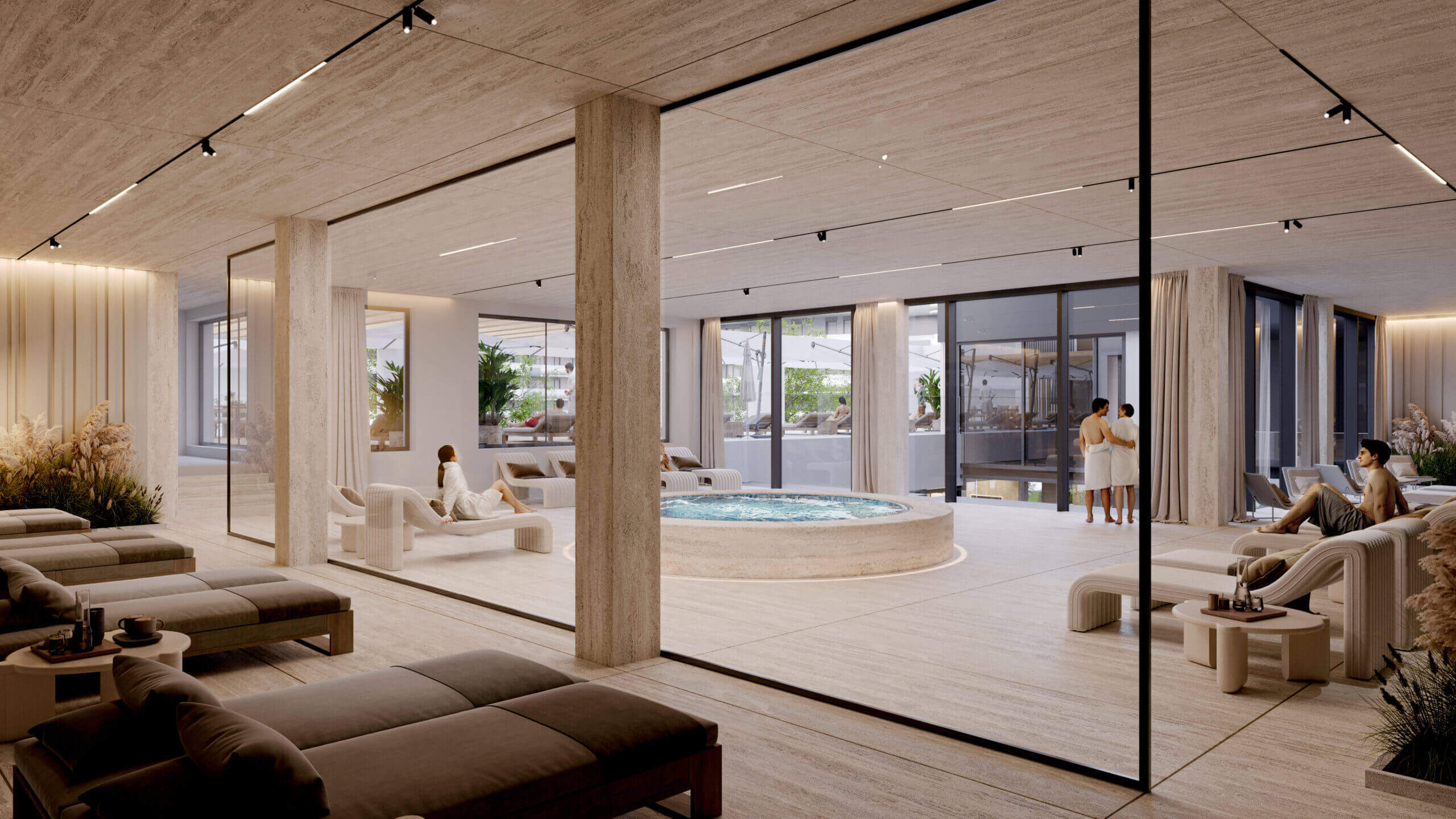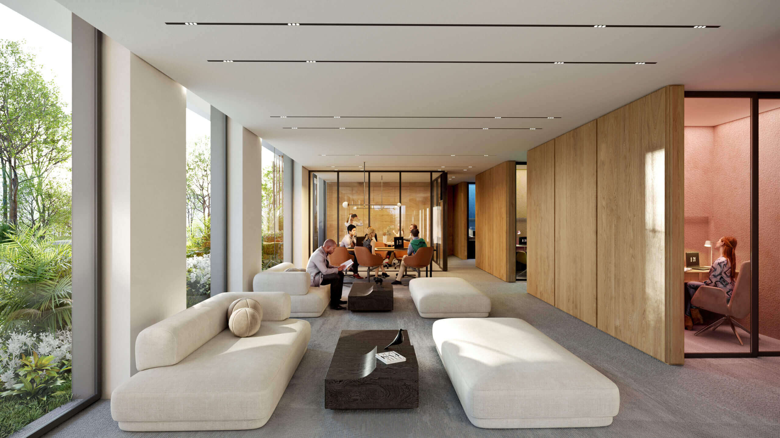 A felszín alatti tágas parkolók garantálják a parkosított zöldterület zavartalanságát, miközben teljes kényelmet nyújtanak a lakóknak és az autóval érkezőknek.
